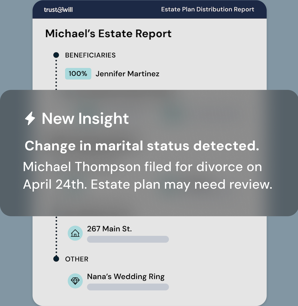 Trust & Will for Attorneys taps into public records, enabling you to stay abreast of key events in the lives of your clients and suggest updates to their estate plan.